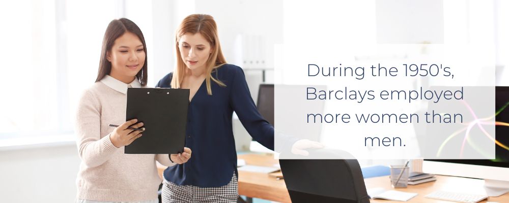 During the two world wars there was an increase in the number of women who worked in banks. This increased during the 1950s when Barclays employed more women than men, an unusual but very welcome state of affairs for that era.